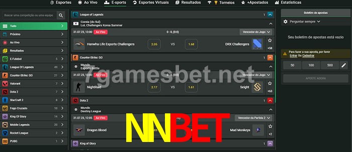 O NNbet oferece uma grande seleção de opções de apostas em e-sports com probabilidades competitivas